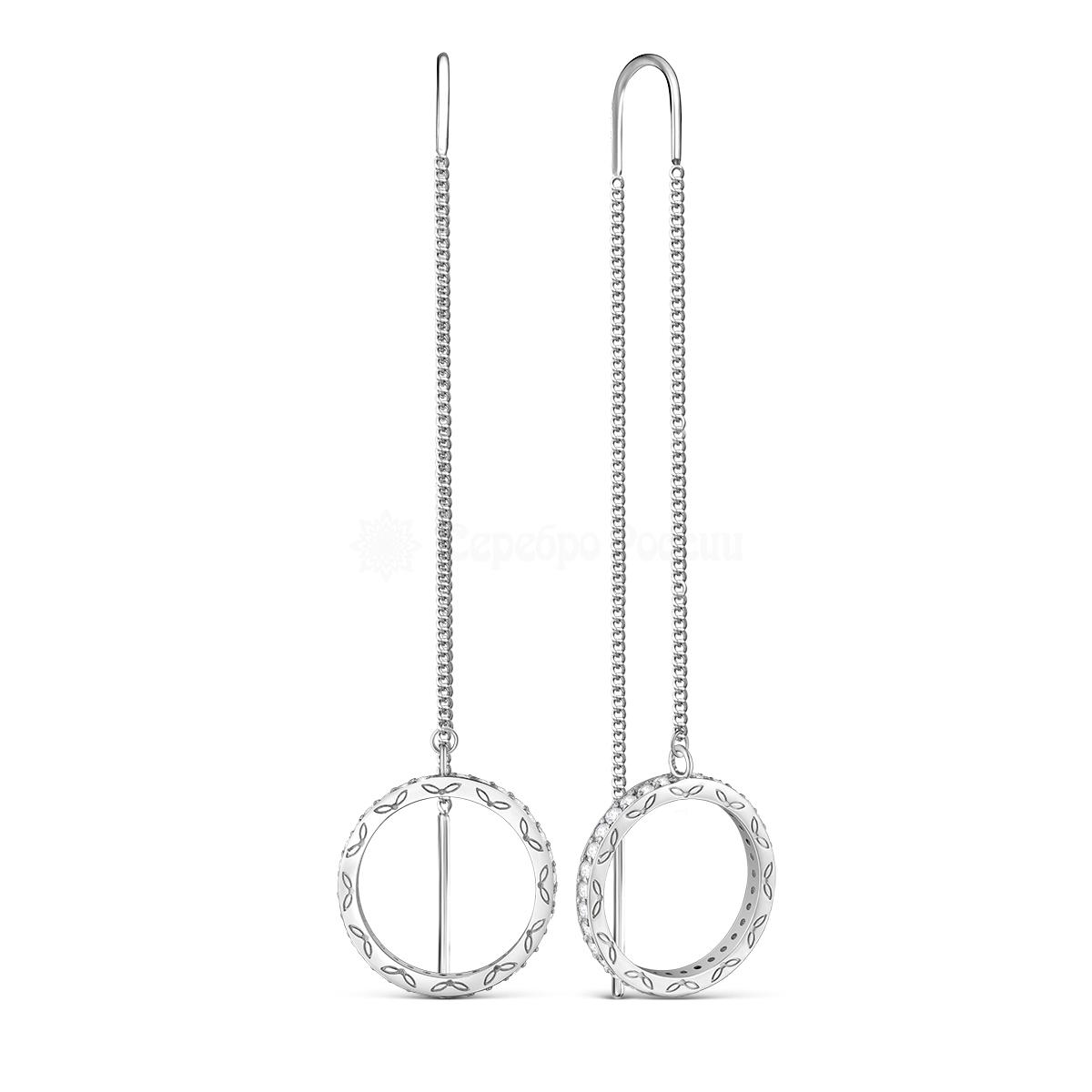 Серьги-продёвки из серебра с фианитами родированные 925 пробы 21430р200