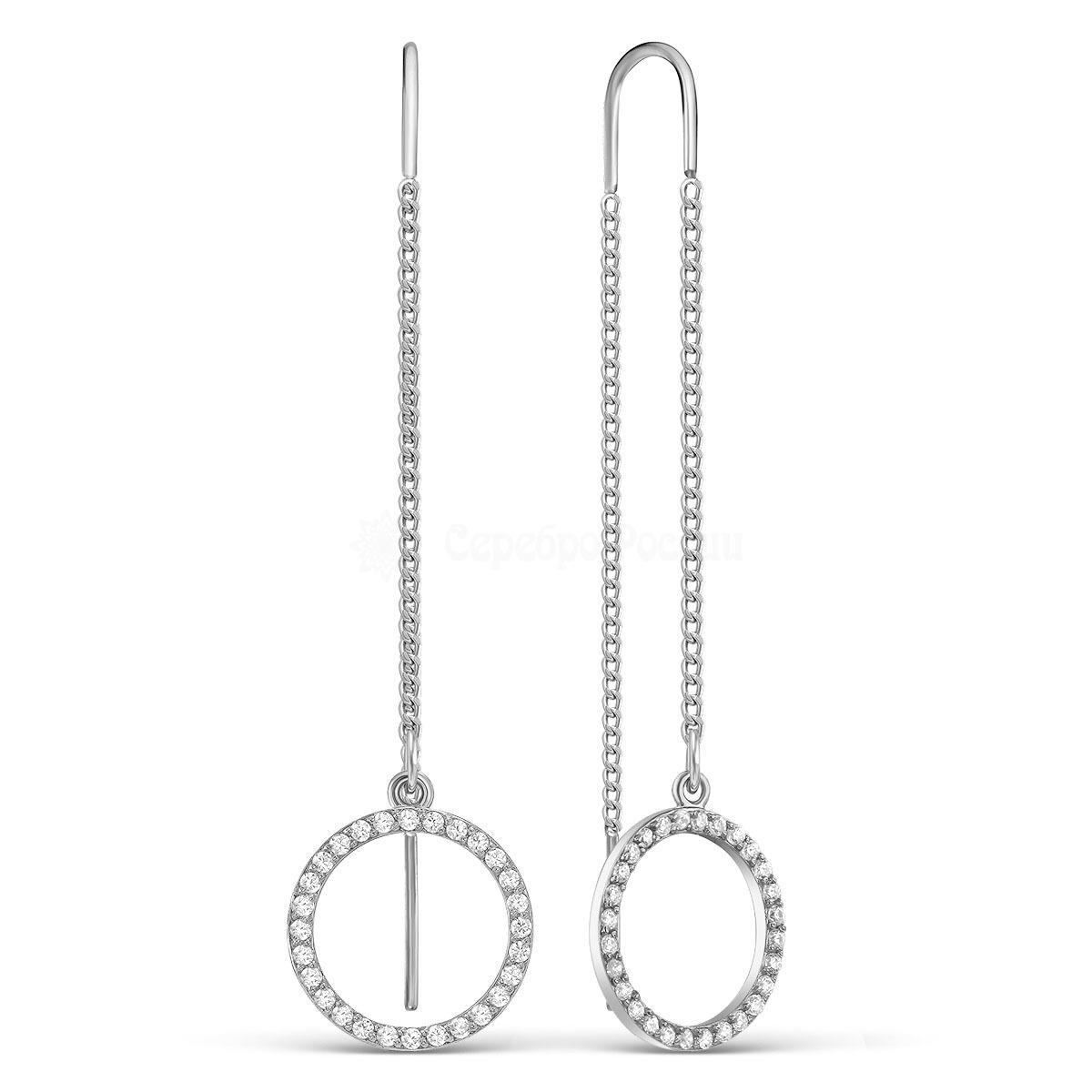 Серьги-продёвки из серебра с фианитами родированные 925 пробы ПС-075р200