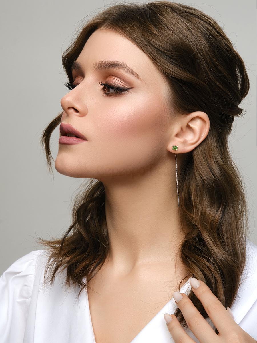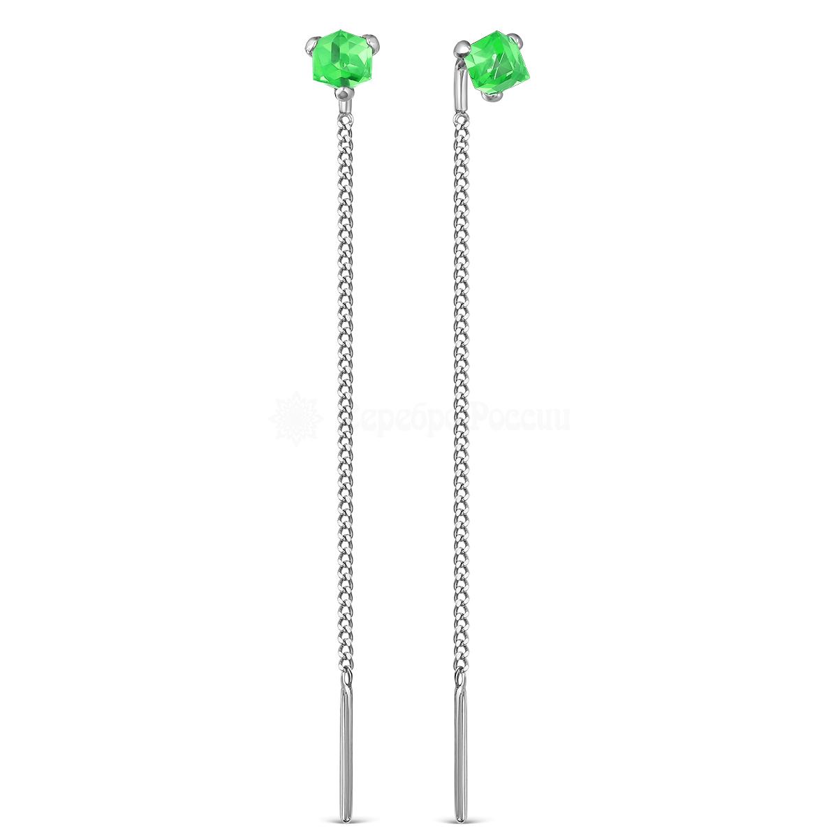 Серьги-продёвки из серебра с кристаллами премиум Австрия цв.зелёный родированные 925 пробы 0058с-214