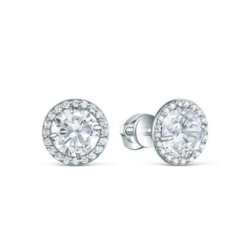 Серьги-продёвки клевер четверолистник из серебра с фианитами родированные 925 пробы 2-570р200