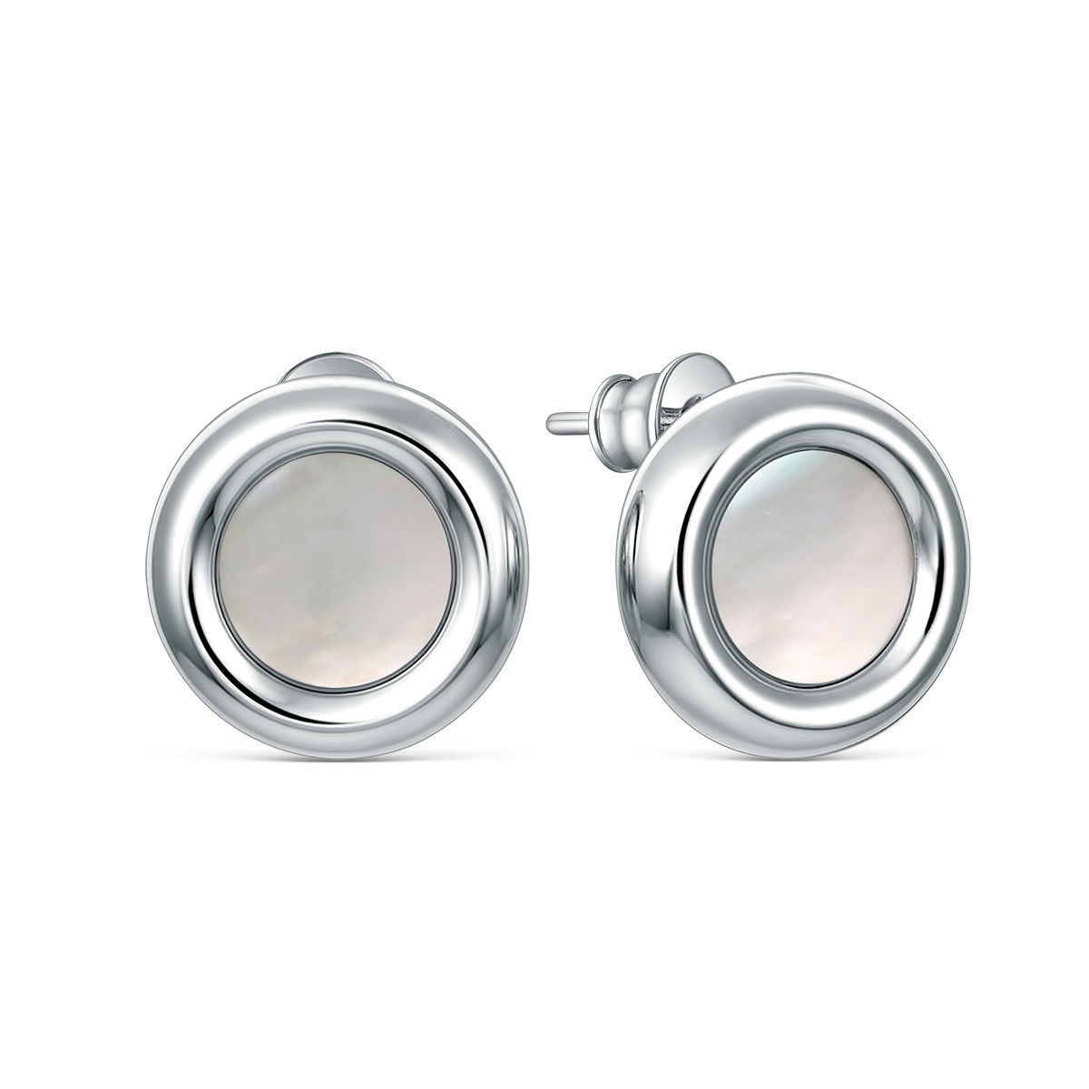 Серьги-пусеты из серебра с белым перламутром родированные 221-10-288-1р