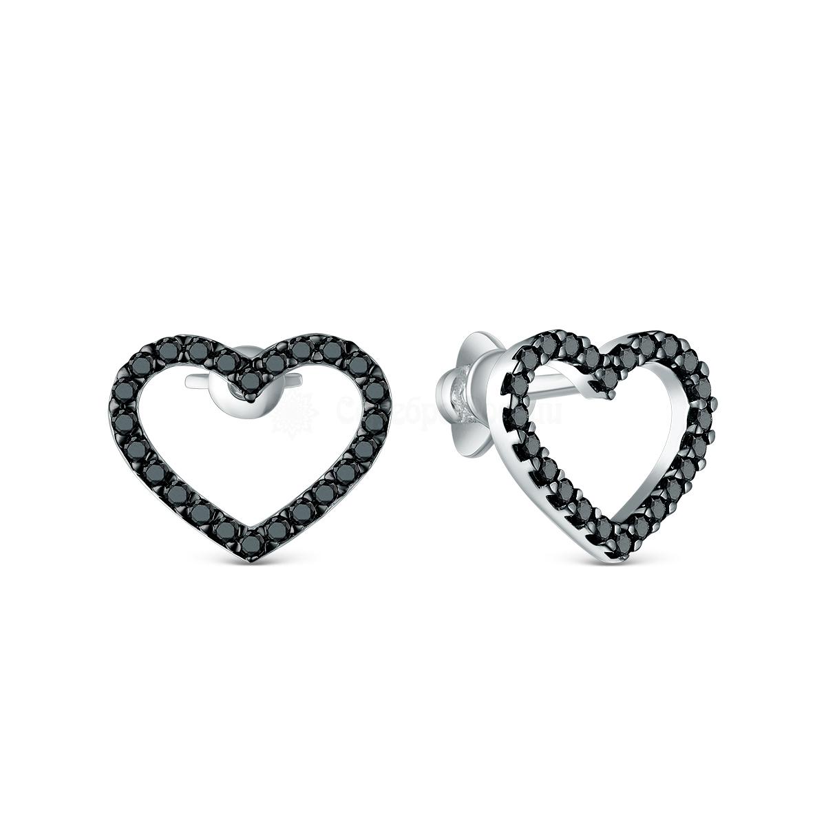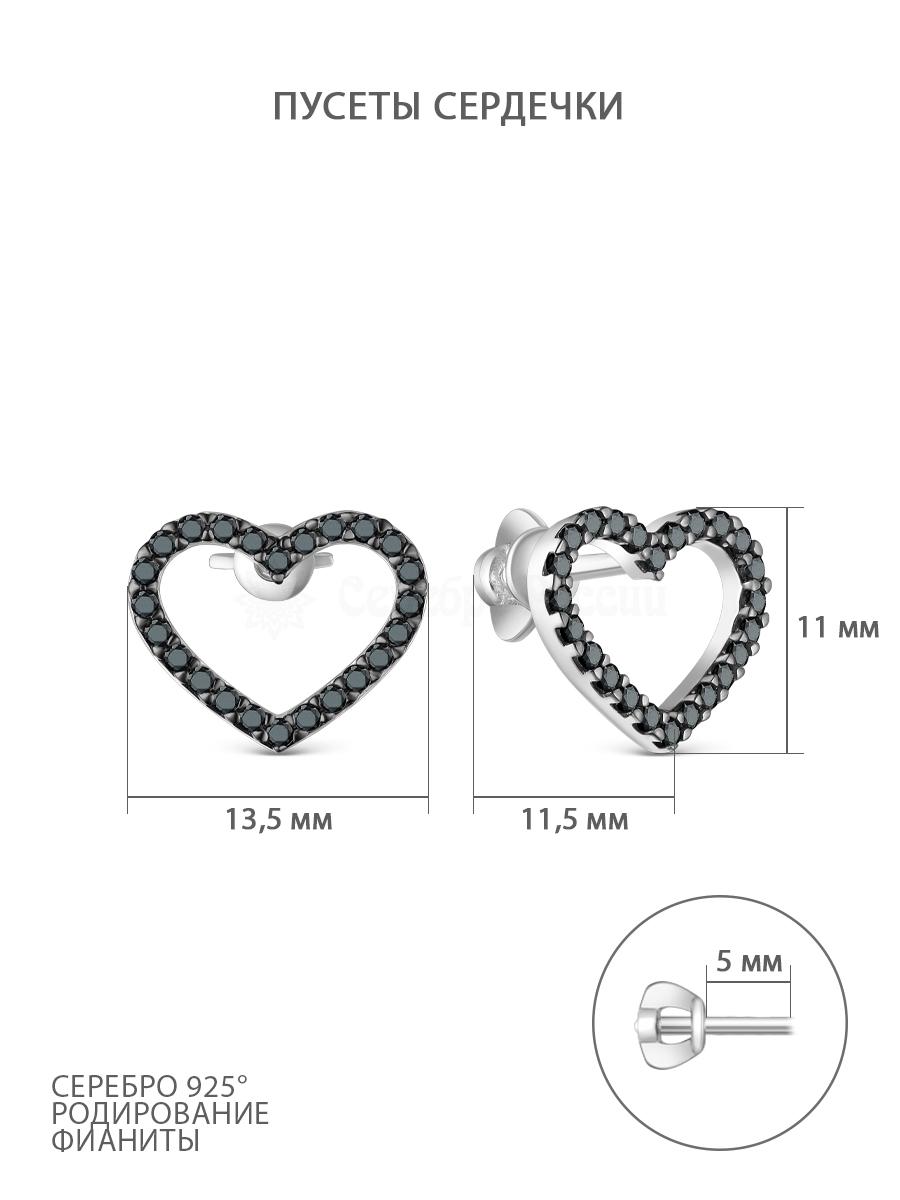 Серьги-пусеты из серебра с фианитами родированные 925 пробы С-7298р216