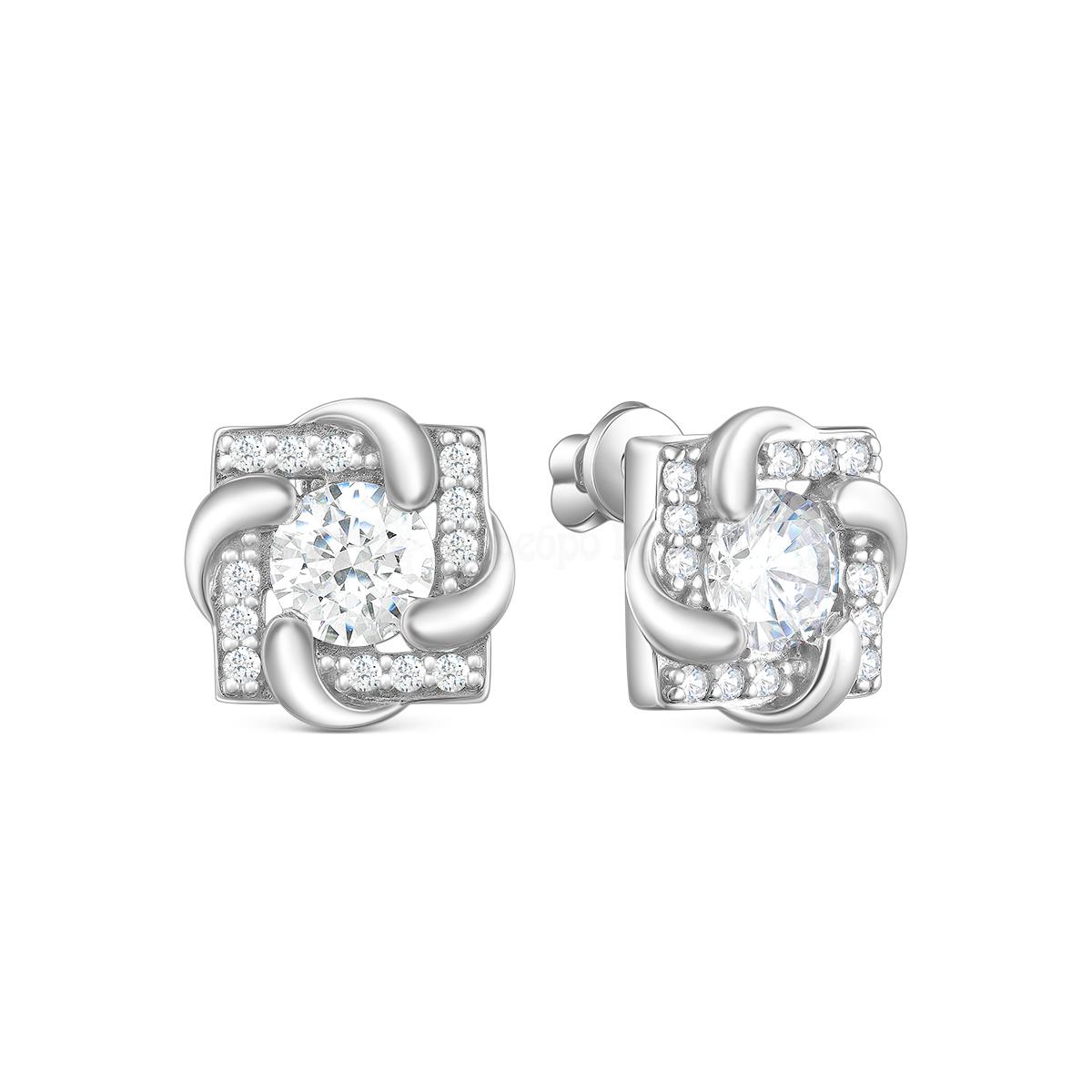 Серьги-пусеты из серебра с фианитами родированные 925 пробы 12-0870