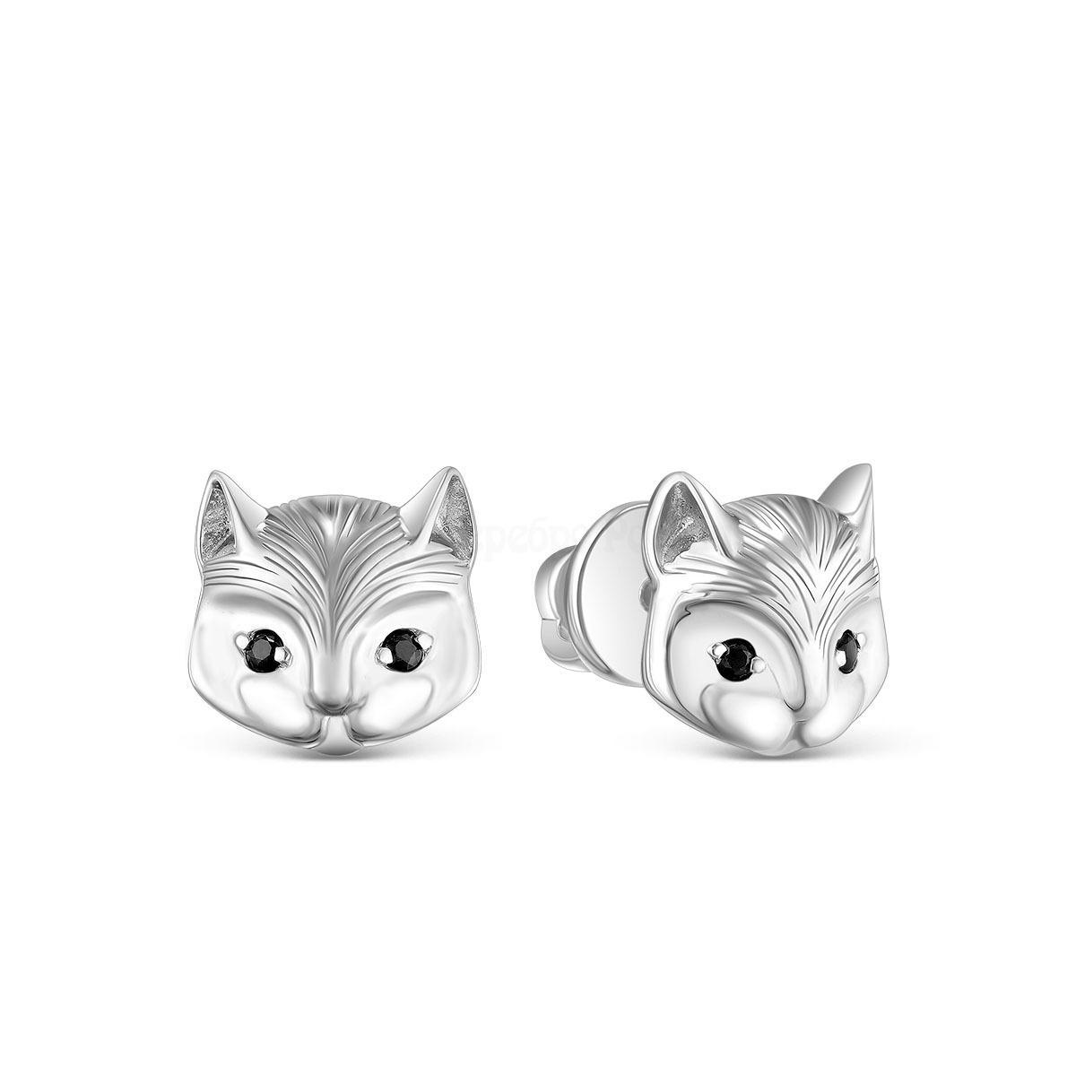 Серьги-пусеты из серебра с фианитами родированные - Кошки 925 пробы С-2474р216