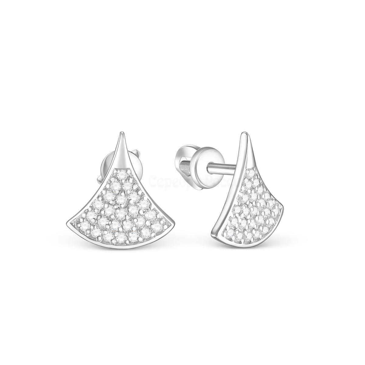Серьги-пусеты из серебра с фианитами родированные 925 пробы С-4654-Р