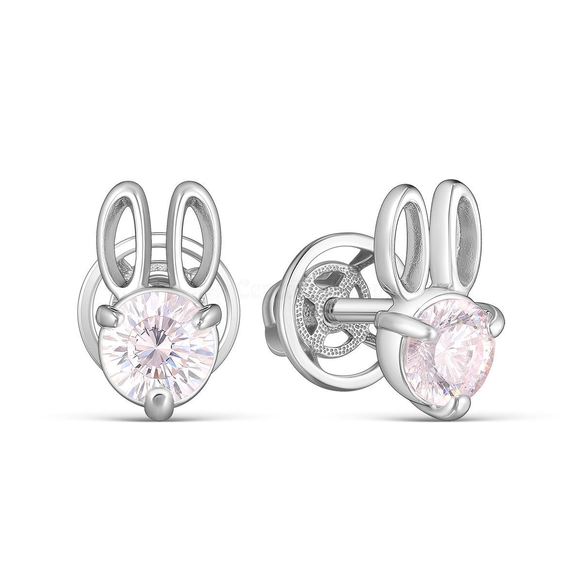 Серьги-пусеты из серебра с фианитами родированные - Зайцы 925 пробы С-4009рс2D71