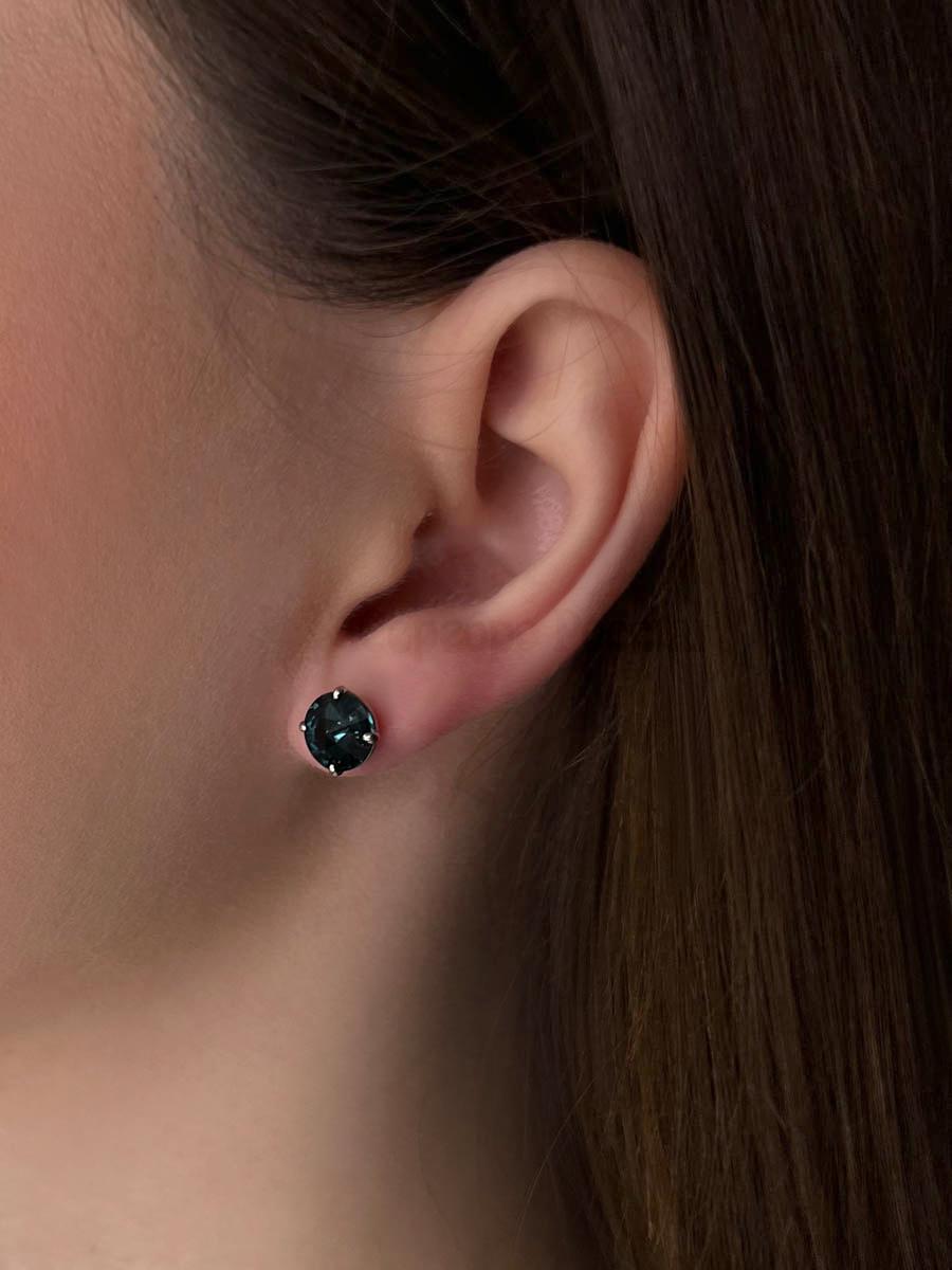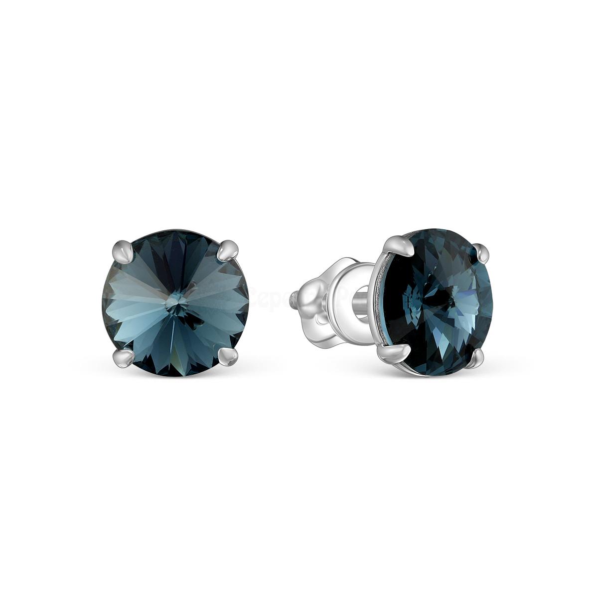 Серьги-пусеты из серебра с кристаллами премиум австрия тёмно-синий родированные 925 пробы 0018с-207