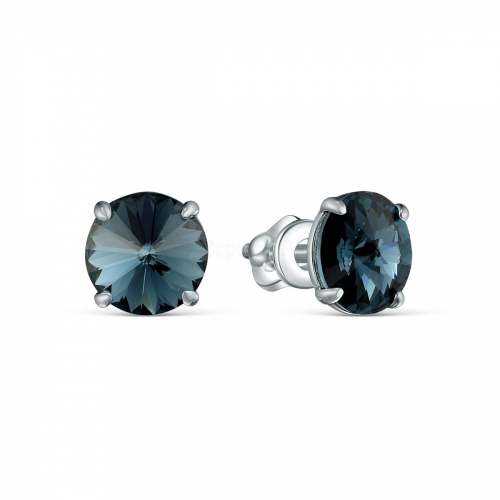 Серьги-пусеты из серебра с кристаллами премиум австрия тёмно-синий родированные 925 пробы 0018с-207