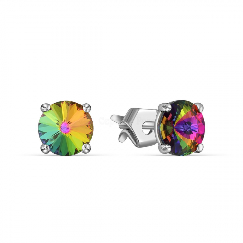 Серьги-пусеты из серебра с кристаллами премиум Австрия зелёный родированные 925 пробы 0017с-214
