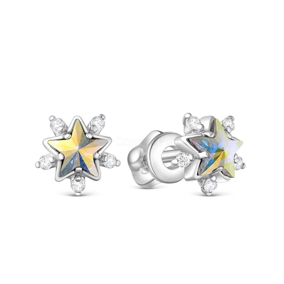 Серьги-пусеты из серебра с кристаллом премиум Австрия цв.Северное сияние и фианитами родированные 925 пробы с-1009-1-001AB
