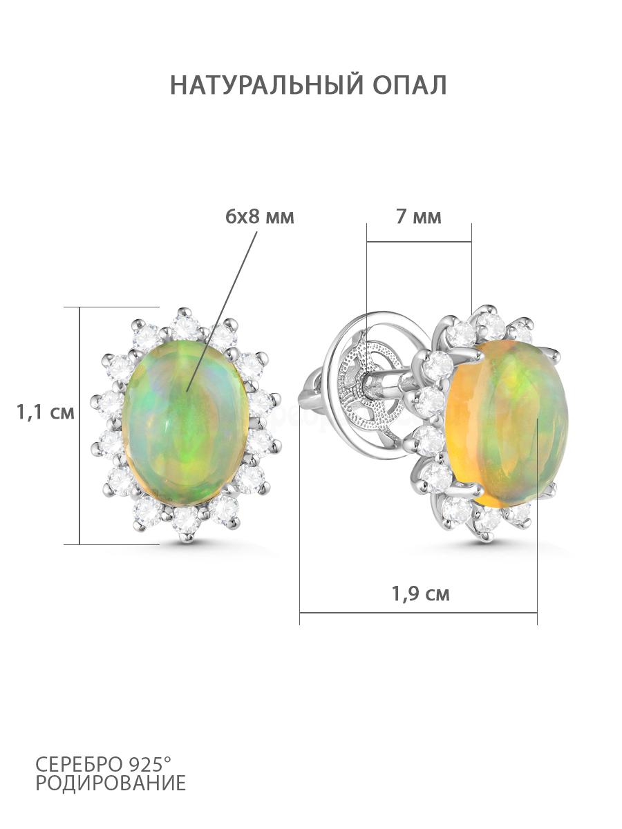 Серьги-пусеты из серебра с нат.опалом и фианитами родированные 925 пробы С-3728рк117000