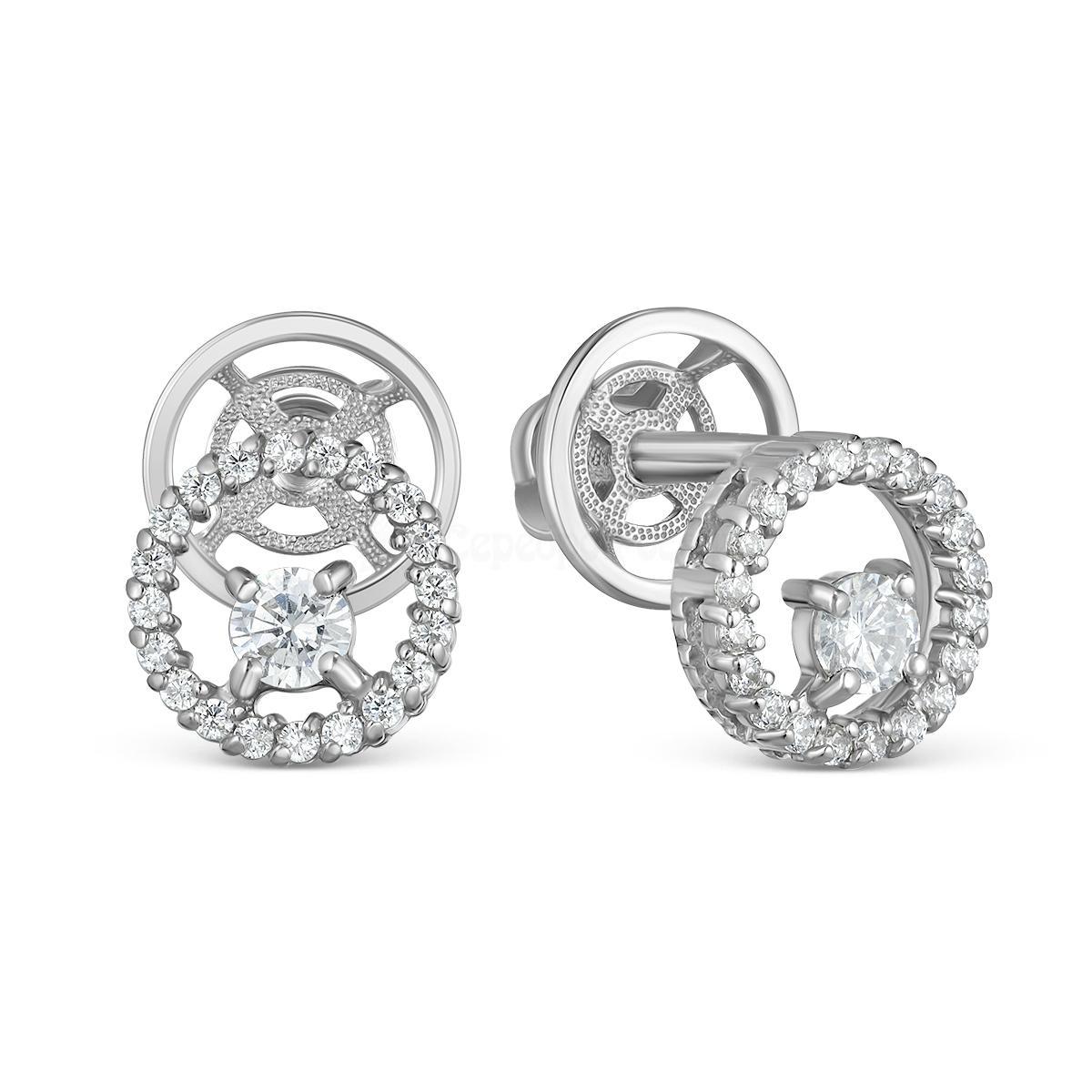 Серьги-пусеты из серебра с синт. муассанитом и фианитами родированные 925 пробы С-3820рс1612800