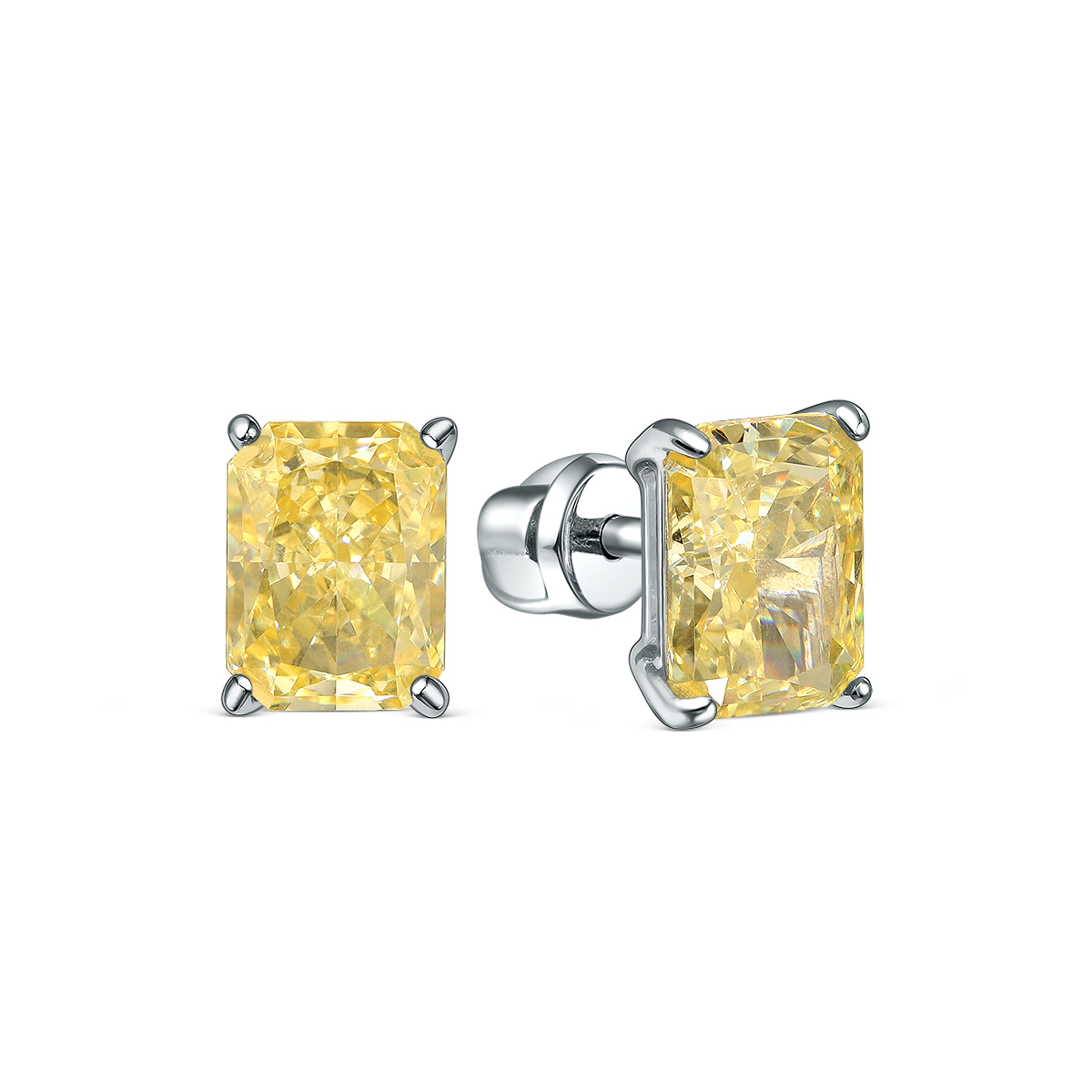 Серьги-пусеты из серебра с жёлтым фианитом родированные 2-035р274