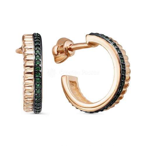 Серьги-пусеты из золочёного серебра с чёрными фианитами и родированием 925 пробы С-7265зчр216