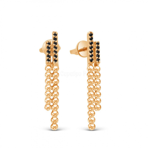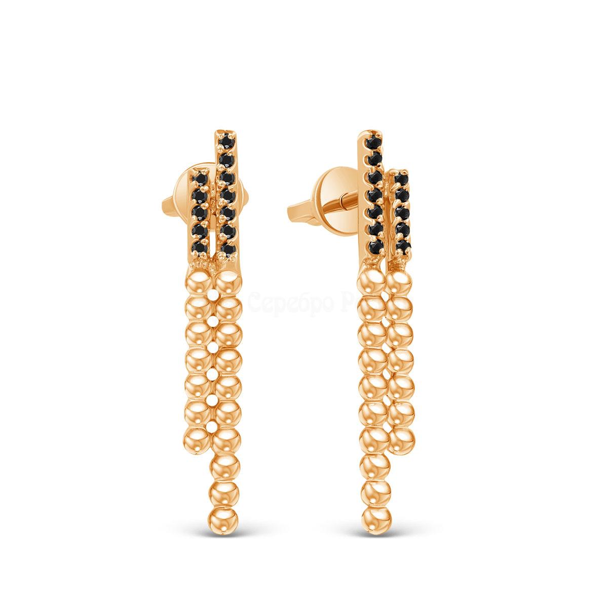 Серьги-пусеты из золочёного серебра с фианитами 925 пробы с041з216
