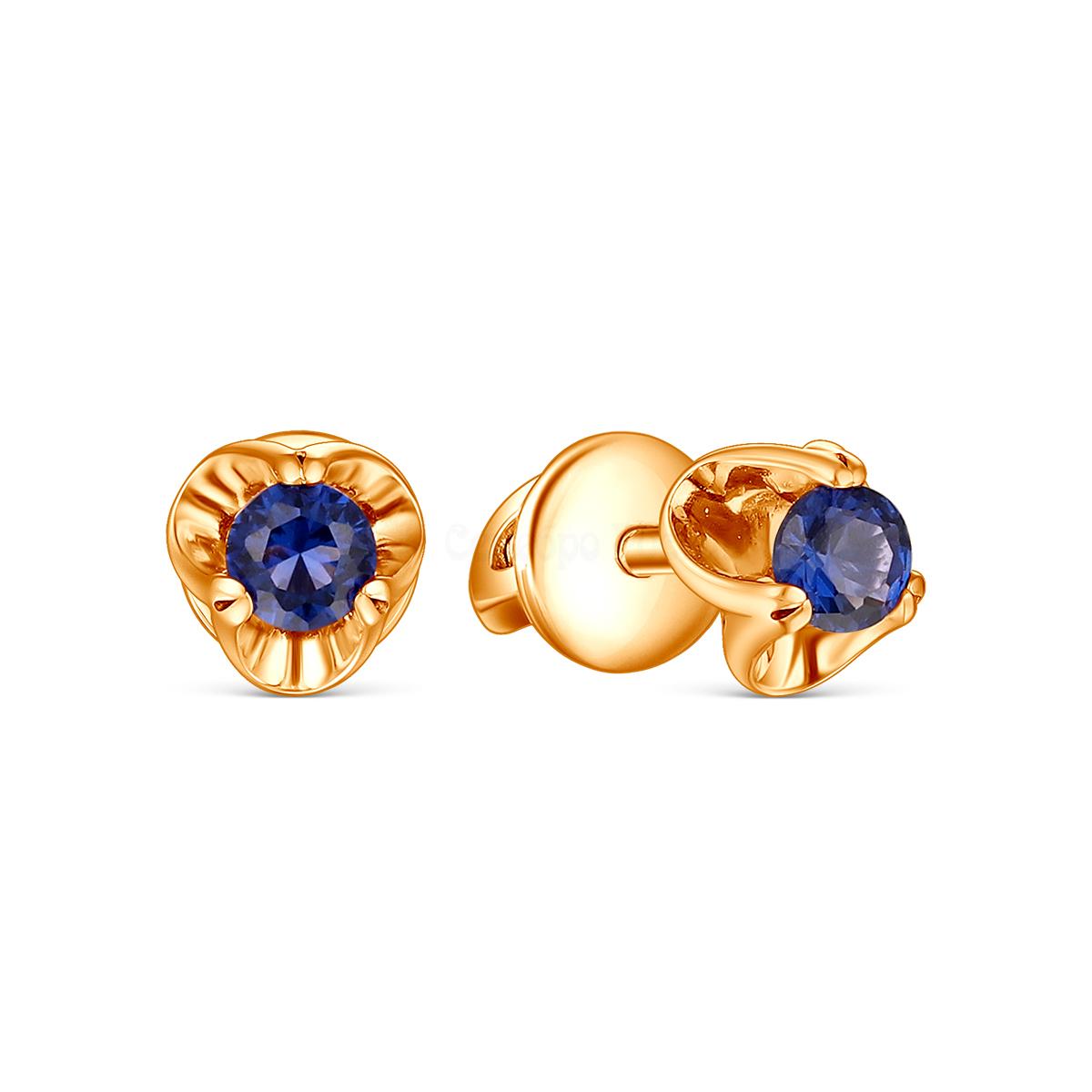 Серьги-пусеты из золочёного серебра с кварцем п6-944з208