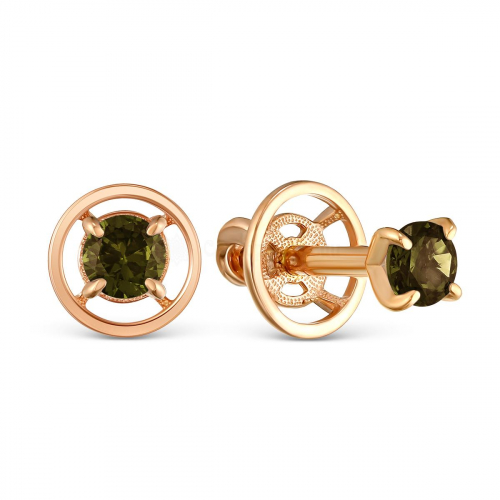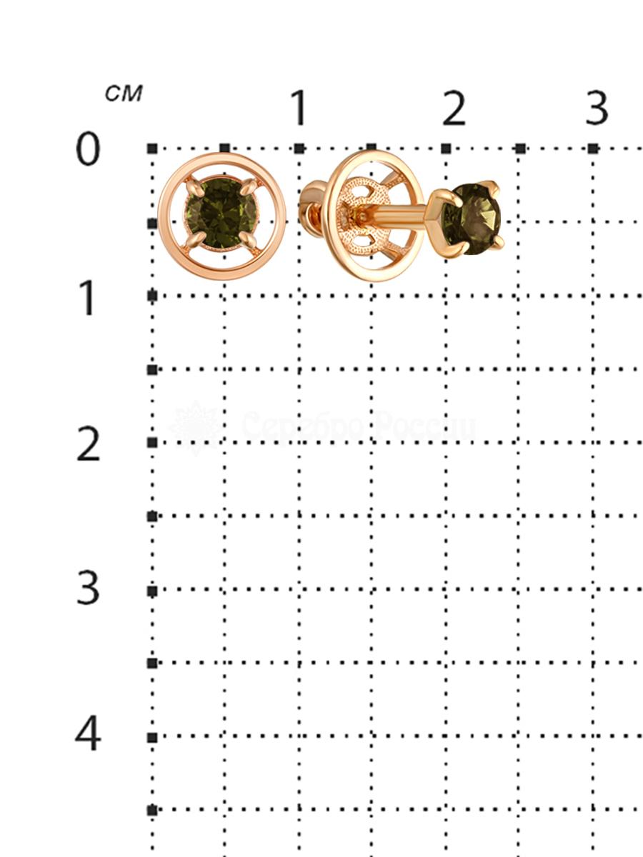 Серьги-пусеты из золочёного серебра с нат.турмалином 925 пробы с-2450зс428