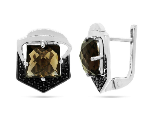 Серьги, арт.650079 Серебро Серебро 925, 4,68 гр., раухтопаз , шпинель
