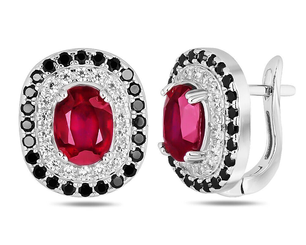 Серьги, арт.657554 Серебро Серебро 925, 4,03 гр., рубин корунд , шпинель нат.