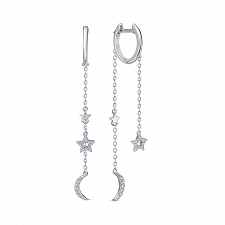 Серьги с фианитом родированные серебро 925*