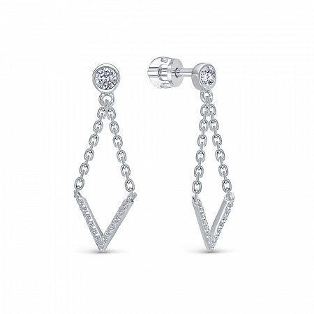 Серьги с фианитом родированные серебро 925*