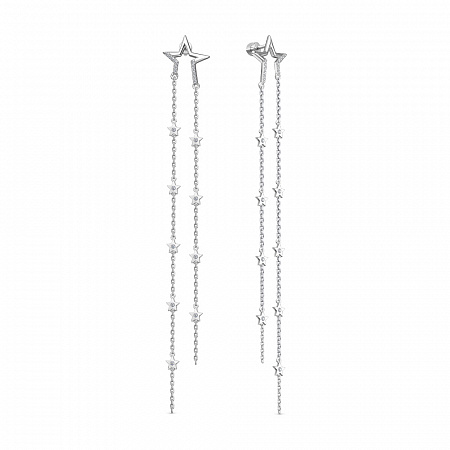 Серьги с фианитом родированные серебро 925*
