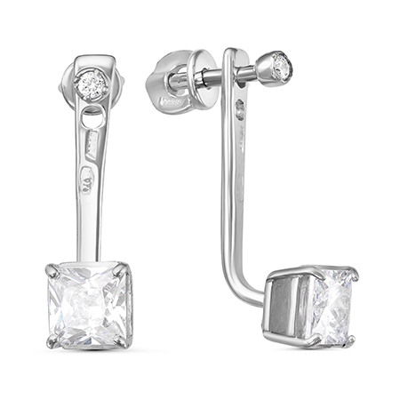 Серьги с фианитом родированные серебро 925*