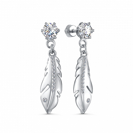 Серьги с фианитом родированные серебро 925*