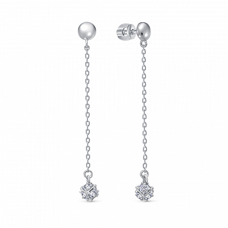 Серьги с фианитом родированные серебро 925*