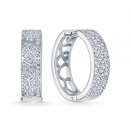 Серьги с фианитом родированные серебро 925*