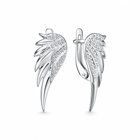 Серьги с фианитом родированные серебро 925*