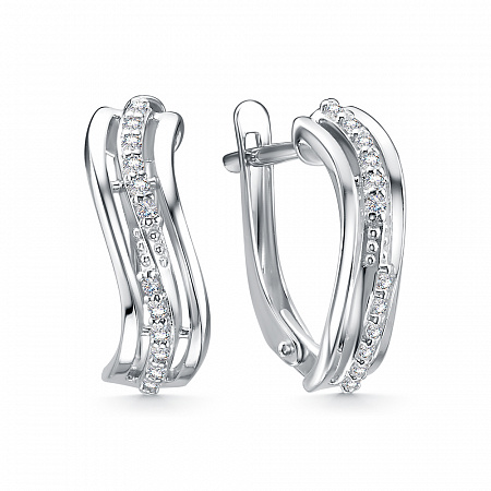 Серьги с фианитом родированные серебро 925*