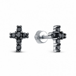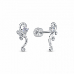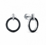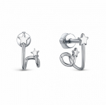 Серьги с фианитом родированные серебро 925*