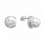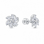 Серьги с фианитом родированные серебро 925*