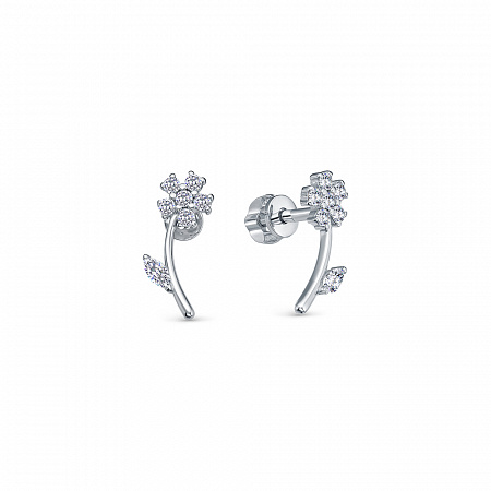 Серьги с фианитом родированные серебро 925*