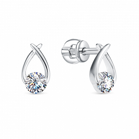 Серьги с фианитом родированные серебро 925*