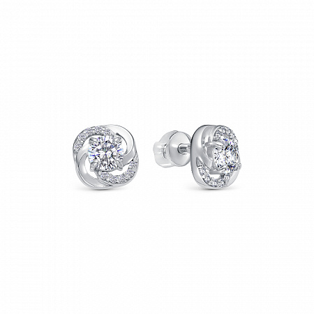 Серьги с фианитом родированные серебро 925*