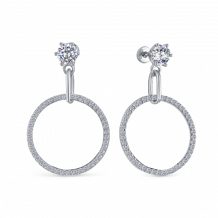 Серьги с фианитом родированные серебро 925*