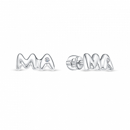 Серьги с фианитом родированные серебро 925*