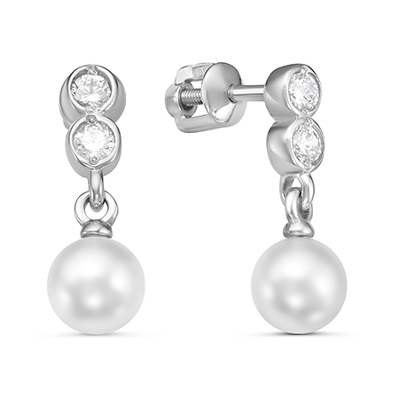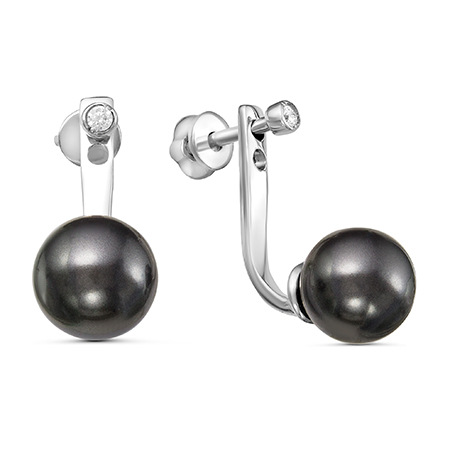 Серьги с иск.жемчугом "черный" родированные серебро 925*