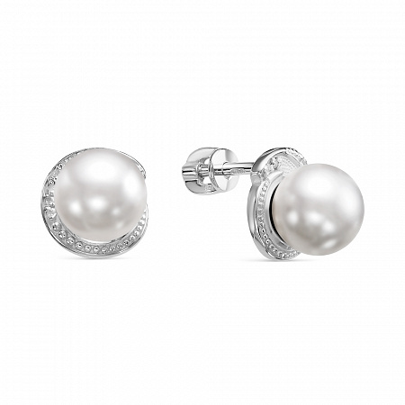 Серьги с иск.жемчугом и фианитом родированные серебро 925*