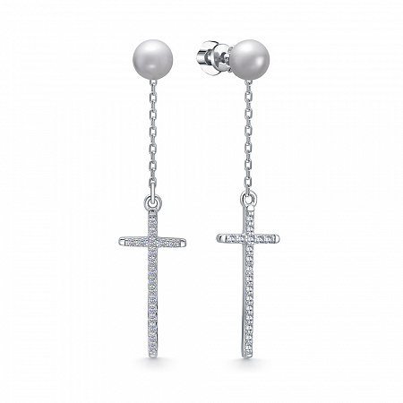Серьги с иск.жемчугом "серый" родированные серебро 925*