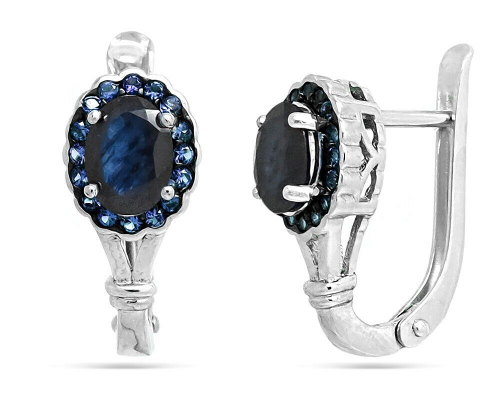 Серьги, арт.640312 Серебро Серебро 925, 4,04 гр., сапфир корунд