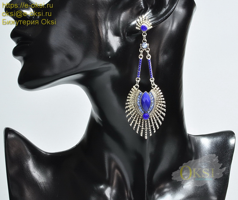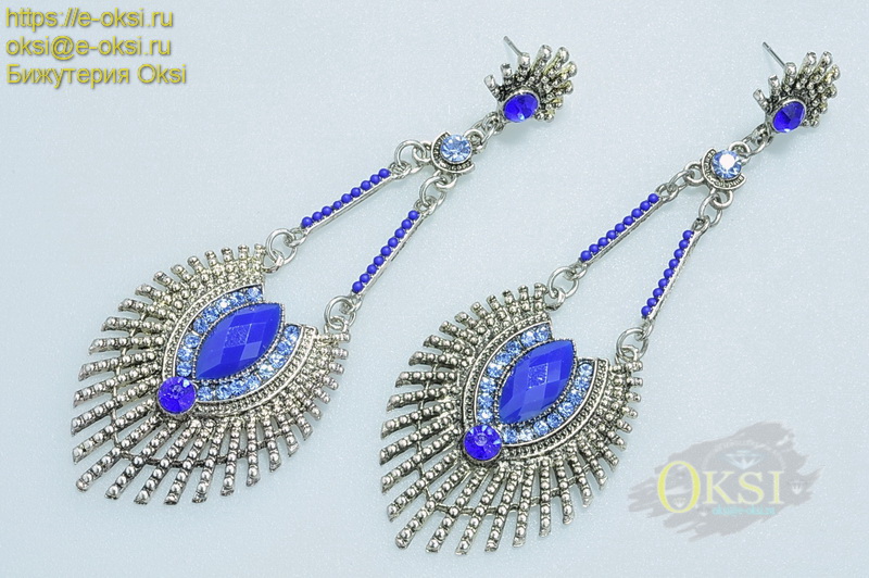 Эффектные, лёгкие ажурные серьги украшены роскошными синими кристаллами. Из всей цветовой палитры синий цвет самый неоднозначный и загадочный. Безупречно стильные сочетания синий создает с универсальным черным и белым. Очень красивые сочетания с красным и желтым, а также с золотым и серебряным цветом одежды и аксессуаров. Длина серьги 9 см. Качественное гальваническое покрытие серебряного цвета.