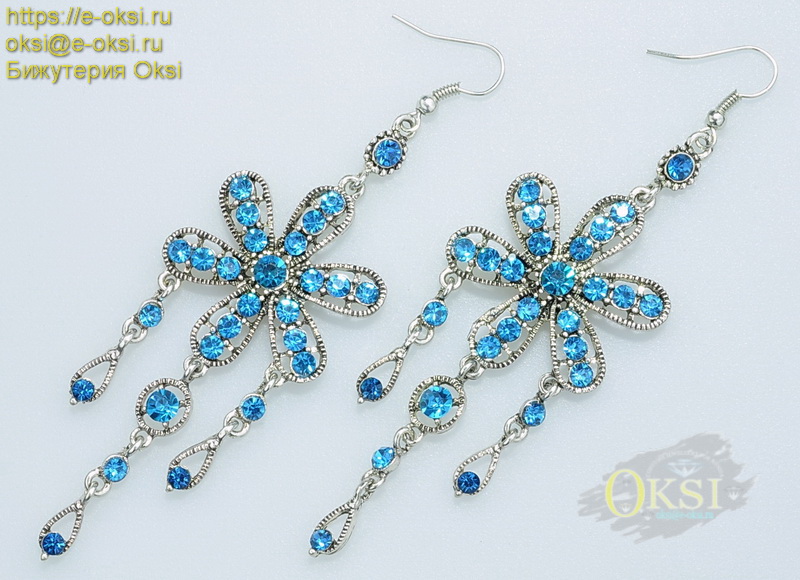 Стильные, лёгкие, эффектные серьги с яркими бирюзовыми кристаллами. Универсальный бирюзовый цвет сочетается с любым оттенком цветовой палитры. Качественное родиевое покрытие серебряного цвета. Длина серьги 10 см
