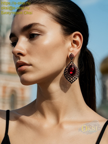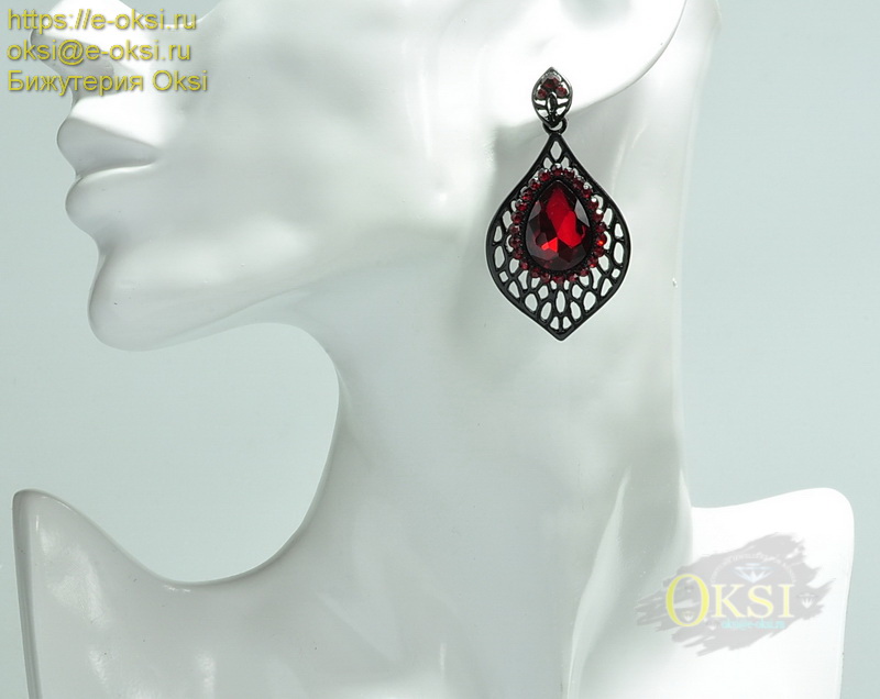 Стильные, лёгкие, ажурные серьги украшены сверкающими кристаллами вишневого оттенка. . Качественное чернёное родиевое покрытие . Фото не отображает блеск и красоту украшения. Длина серьги 5,5 см.