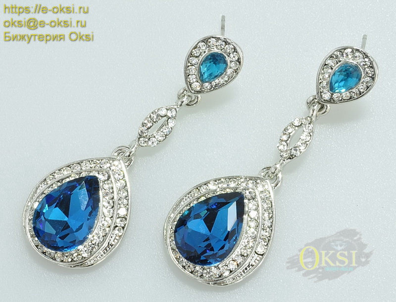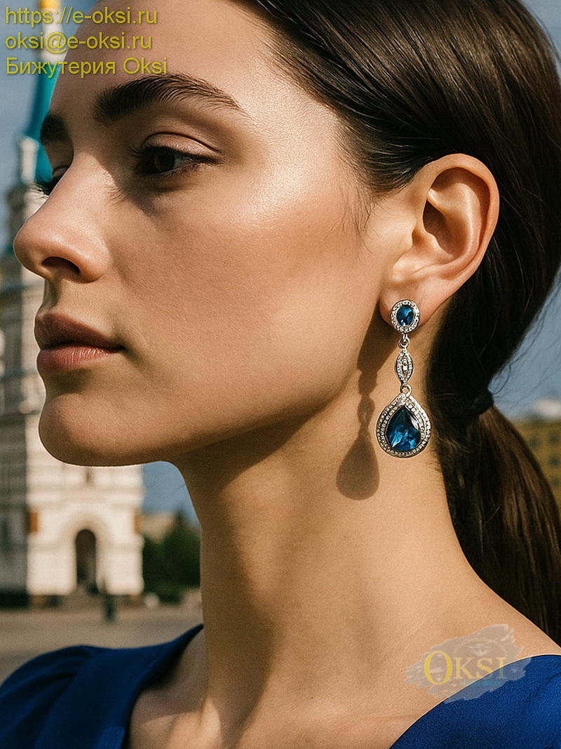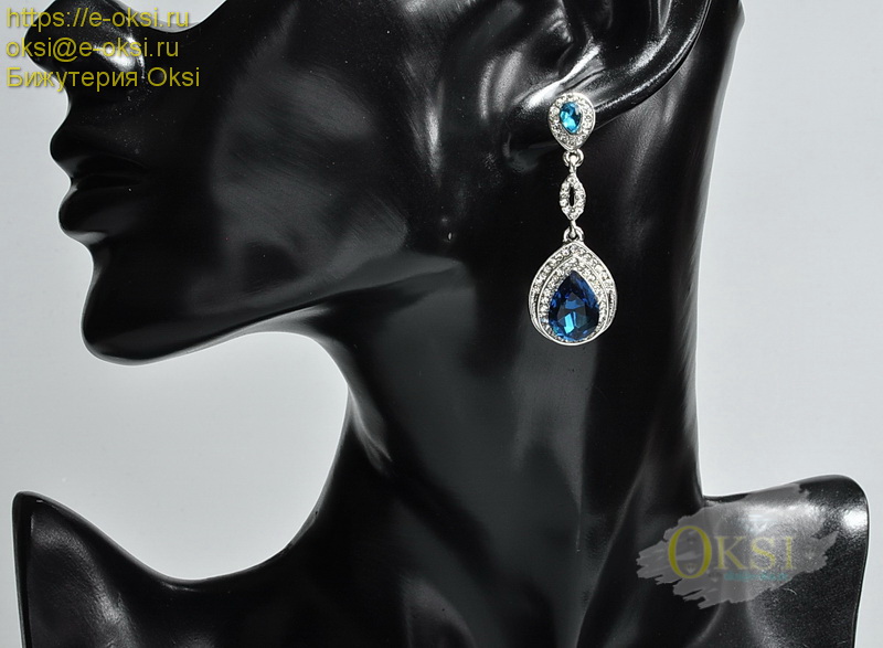 Элегантные длинные серьги с крупным роскошно- синими кристаллами, украшенными сверкающими зеркальными фианитами. Фото не отображает блеск и красоту украшения. Длина серьги 5 см. Качественное родиевое покрытие серебряного цвета.
