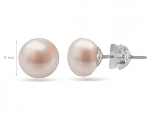 Серьги, жемчуг розовый, ПЖ-9мм/ААА