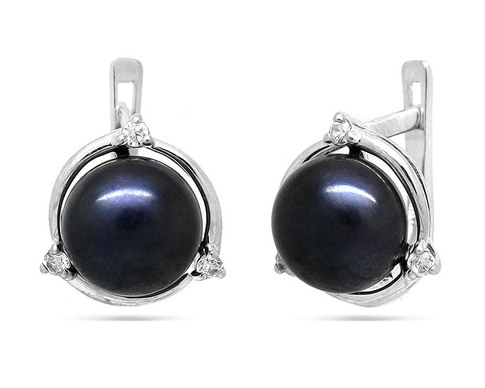 Серьги из серебра жемчуг, см079ч