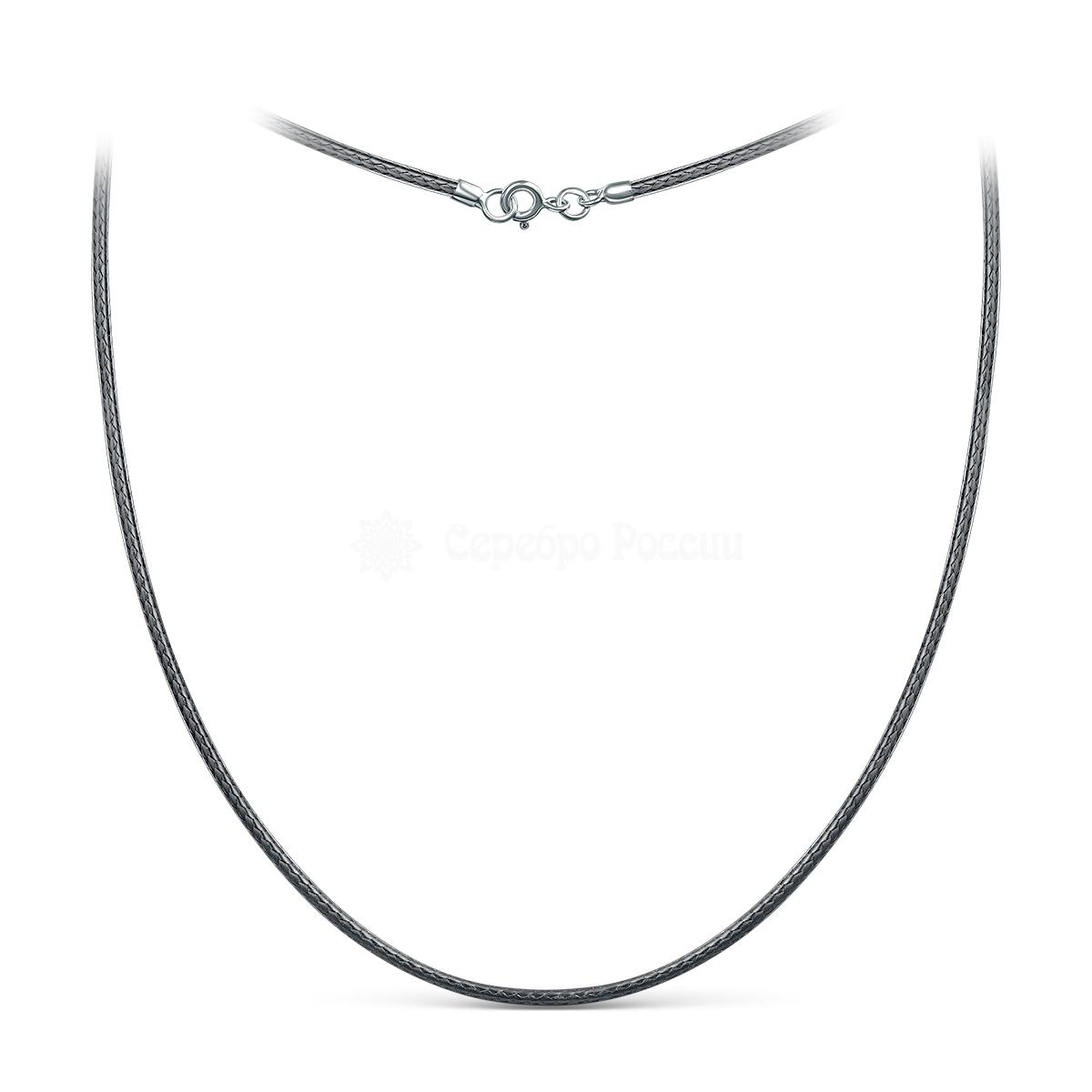Шнурок текстильный (вощёный) серый с замком из родированного серебра ХШ-003р-01серый